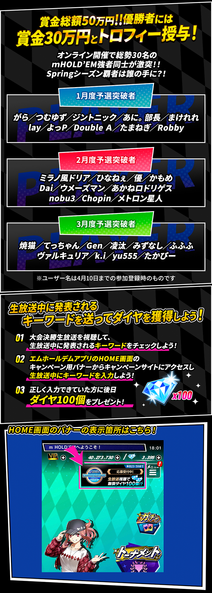 m HOLD‘EM CHAMPIONSHIP決勝~SPRING~ 優勝者予想キャンペーン